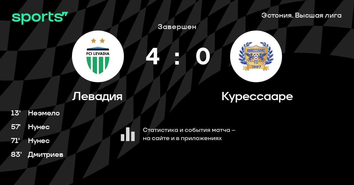 Каалма - Володин, Калимуллин, Тенисте, Морозов, Малов - Пури, Нунес, Нахк - Неэмело, ЛейтанЗапасные: Лепметс, Holst, Дмитриев, Ratnikov, Пебре, Дмитриев