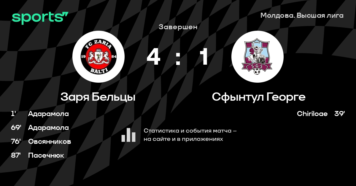 Заря Бельцы - Сфынтул Георге: положение в турнире