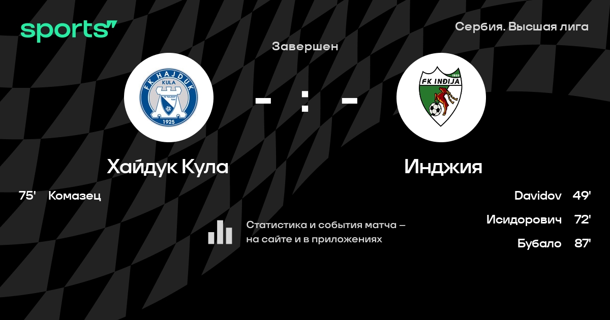 Хайдук Кула - Инджия: статистика матча