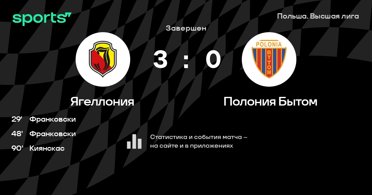| 4 | Ягеллония | 30 | 14 | 6 | 10 | 38 | 32 | +6 | 48 | ||