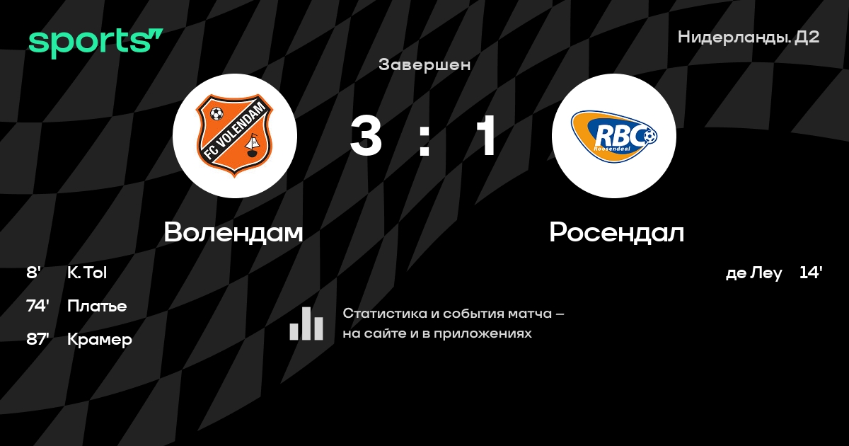 Чемпионат Голландии. 24-й тур. «Аякс» одолел «Волендам», «Фейеноорд» победил «Де Графсхап»