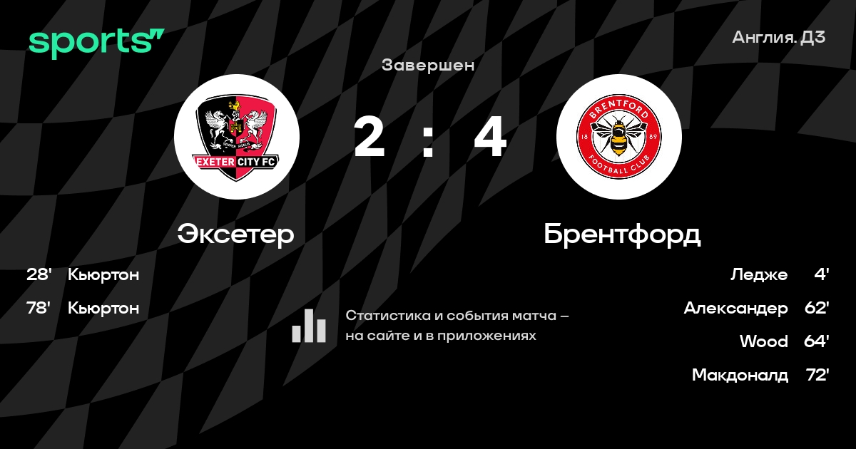Эксетер – Брентфорд: коэффициенты