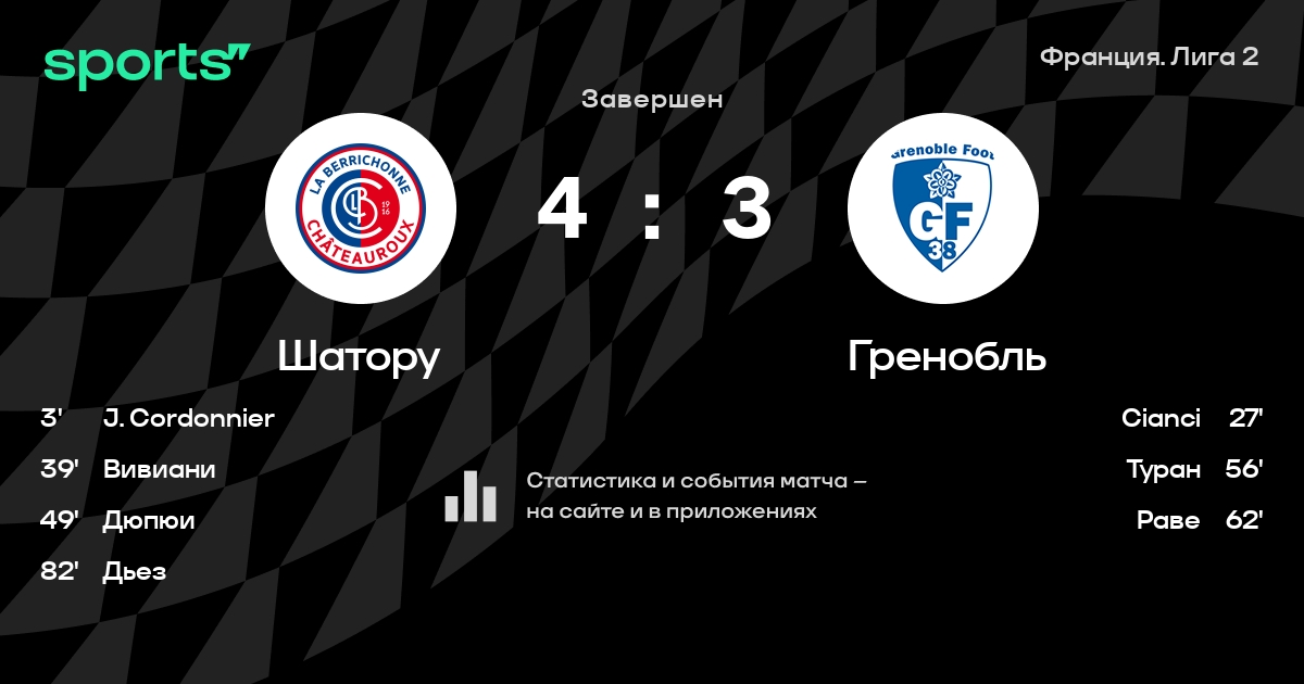Вивиани - Cianci, Дос Рейс, Абардонадо, Марке, Mainfroi, Туран - Таидер, Дьез, Johansen - РавеЗапасные: Малерб, Менди, Бурабия, Ayari, Lasimant
