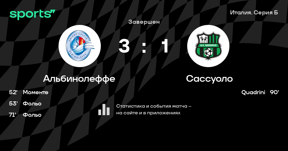 Томазиг - Луони, Бергамелли, Регонези, Дзенони, Фольо, Sala - Хетемай, Пассони - Моменте, СиссеЗапасные: Layeni, Garlini, Пиччини, Джиразоле, Cia, Гросси, Кокко