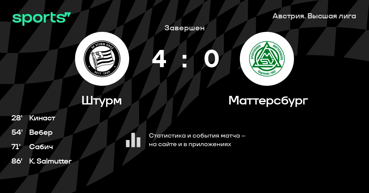 Гратцей - Шильденфельд, Штандфест, Фельдхофер, Пюрхер - Муратович, Вебер, Salmutter, Хольцль - Сабич, КинастЗапасные: Чавлина, Эренрайх, Бургшталлер, Клем, Кайнц, Фода