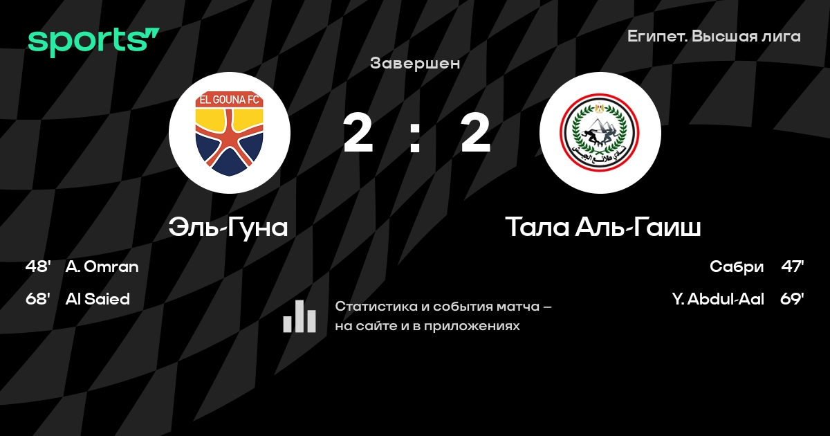 Эль-Гуна – Тала Аль-Гаиш: коэффициенты