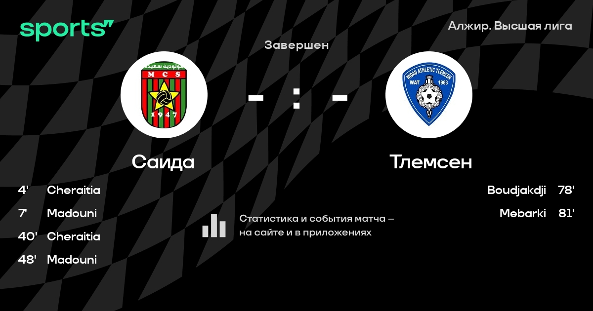Джемили - Mebarki, Башири, Boudjakdji, Habri - Lazaref, Belgherri, Сидхум, Kada Benyacine - Андриамациноро, Bousehaba