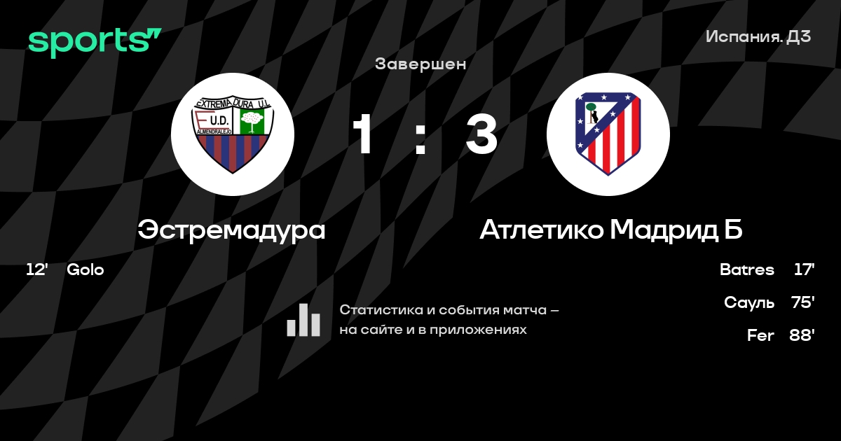 Трансляция Эстремадура - Атлетико Мадрид Б