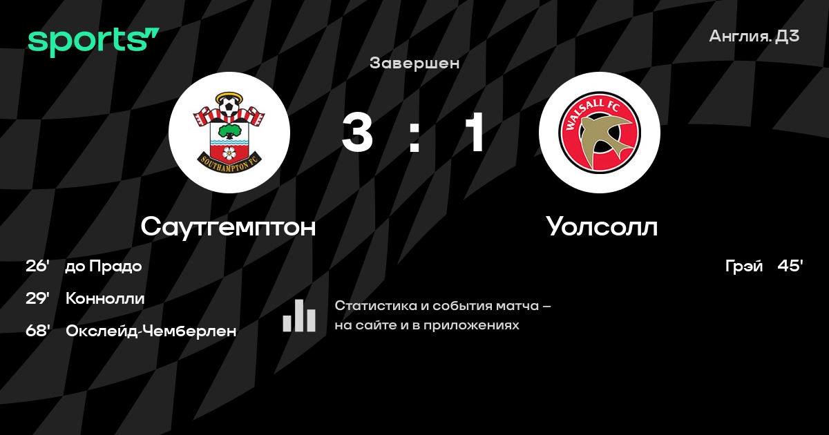 Дэвис - Фонте, Ричардсон, Жаиди - Лаллана, Шнайдерлин, Хэммонд, Диксон - Коннолли, Ламберт, до ПрадоЗапасные: Бялковски, Сиборн, Мартин, Окслейд-Чемберлен, Форт