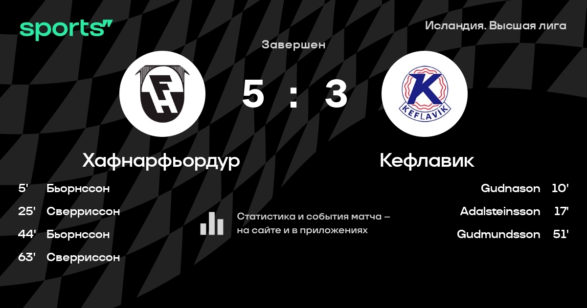 Jörgensen - Антониуссон, Gudmundsson, Gudmundsson, Sutej - Adalsteinsson, Birgisson, Рунарссон - Steinarsson, Sveinsson, GudnasonЗапасные: Ásgeirsson, Траустасон, Matthíasson, Ljubicic, Einarsson, Thorsteinsson