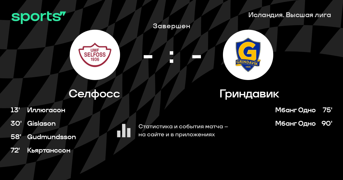 Петюрссон - Йосефссон, Хельгасон - Bjarnason, Ramsay, Magnússon, Bjarnason, Helgason - Hjartarsson, Хьялталин, Мбанг ОдноЗапасные: Daníelsson, Mbang Ondo, Fridriksson, Вильхьяльмссон, Торстейнссон, Símonarson
