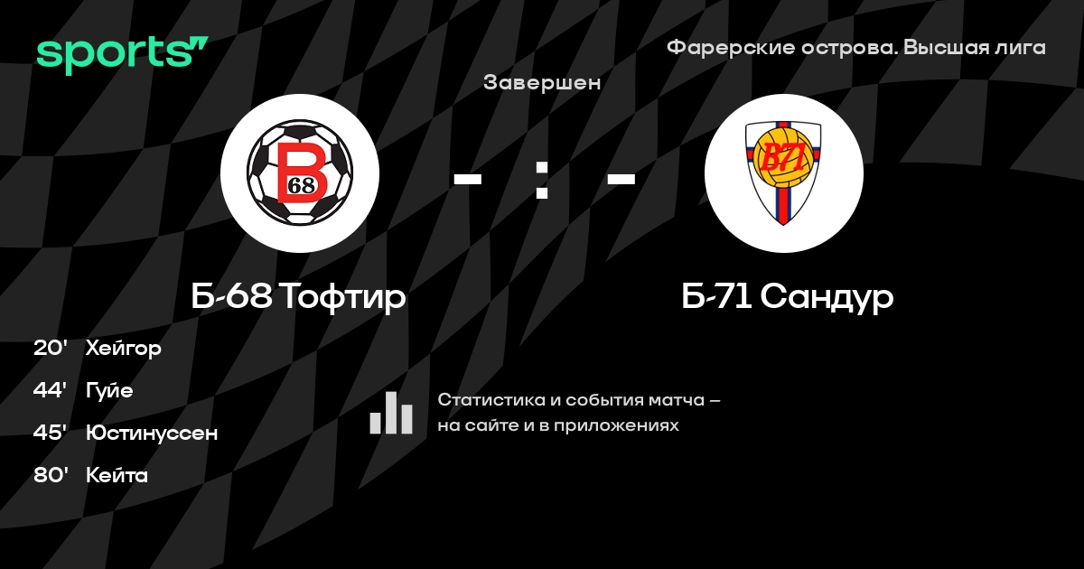 Filipovic - Юстинуссен, Гуйе, Højgaard, Хейгор, Poulsen - Poulsen, Langgaard, Кейта, Olsen - AndreassenЗапасные: Магнуссен, Joensen, Poulsen, Хейгор