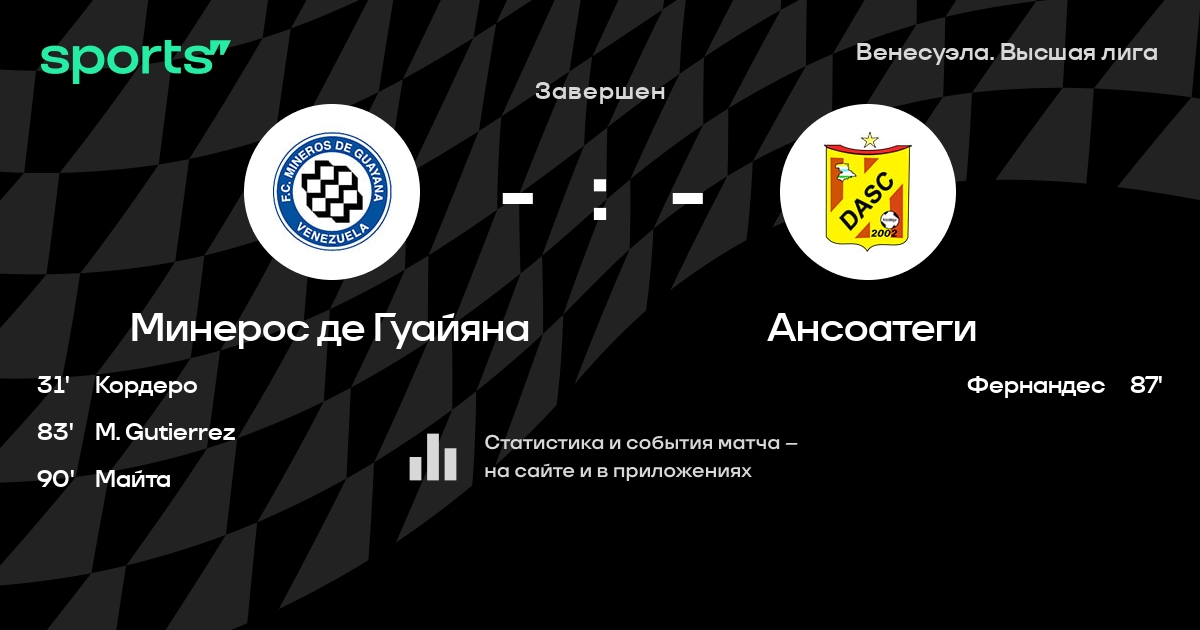 Минерос де Гуайяна – Ансоатеги: коэффициенты