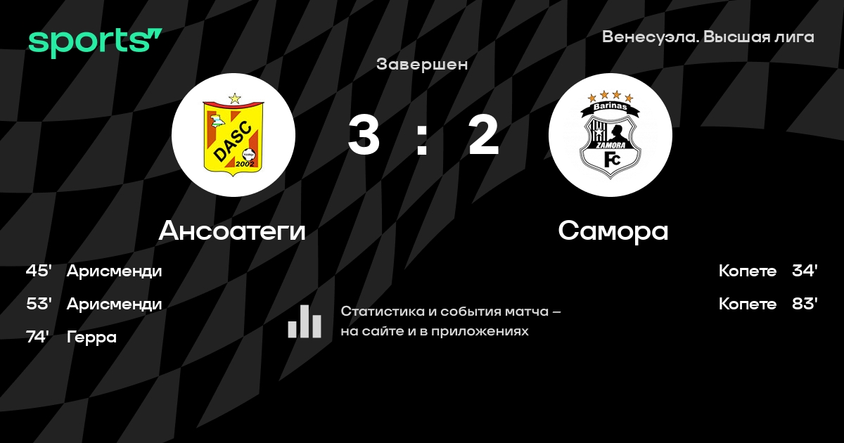 | 7 | Ансоатеги | 17 | 7 | 5 | 5 | 35 | 30 | +5 | 26 | ||