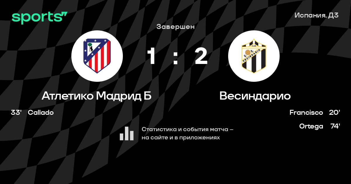 Трансляция Атлетико Мадрид Б - Весиндарио