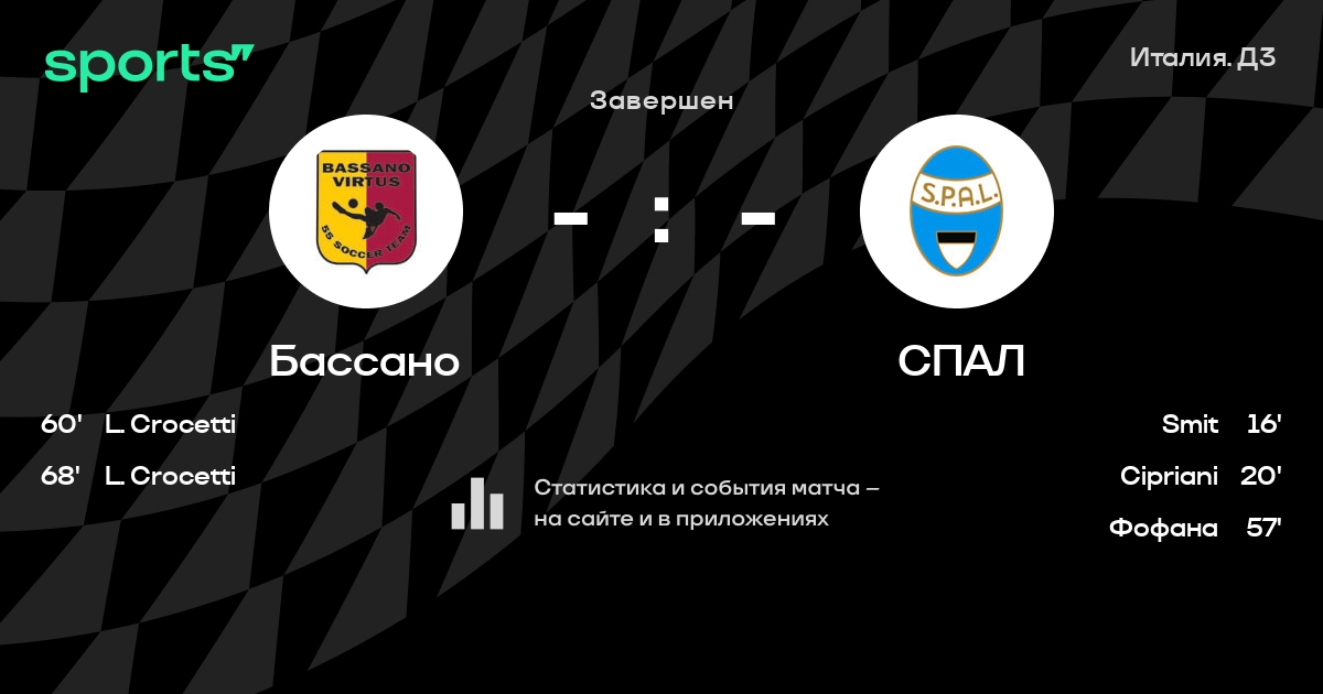 Равалья - Rossi, Гетти, Battaglia, Корси, Zamboni - Coppola, Šmit, Migliorini - Cipriani, Фофана