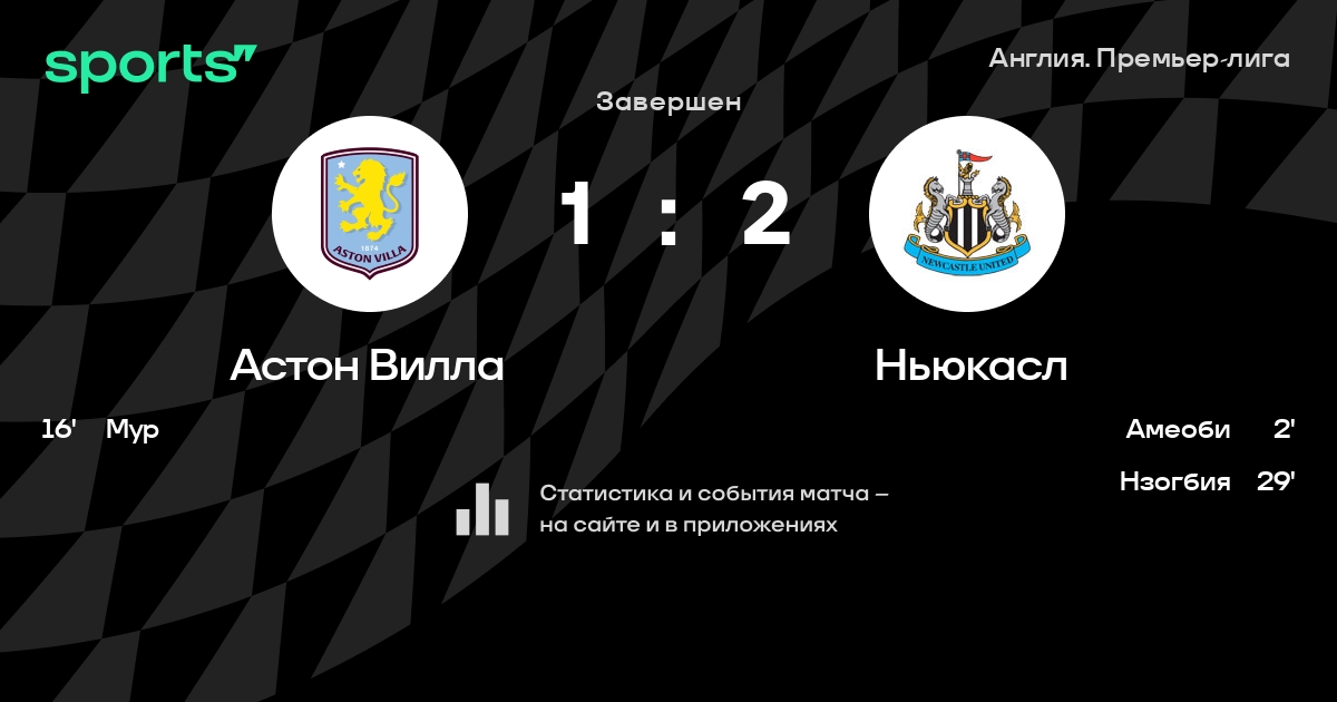 16 | Астон Вилла | 38 | 10 | 12 | 16 | 42 | 55 | -13 | 42 | ||