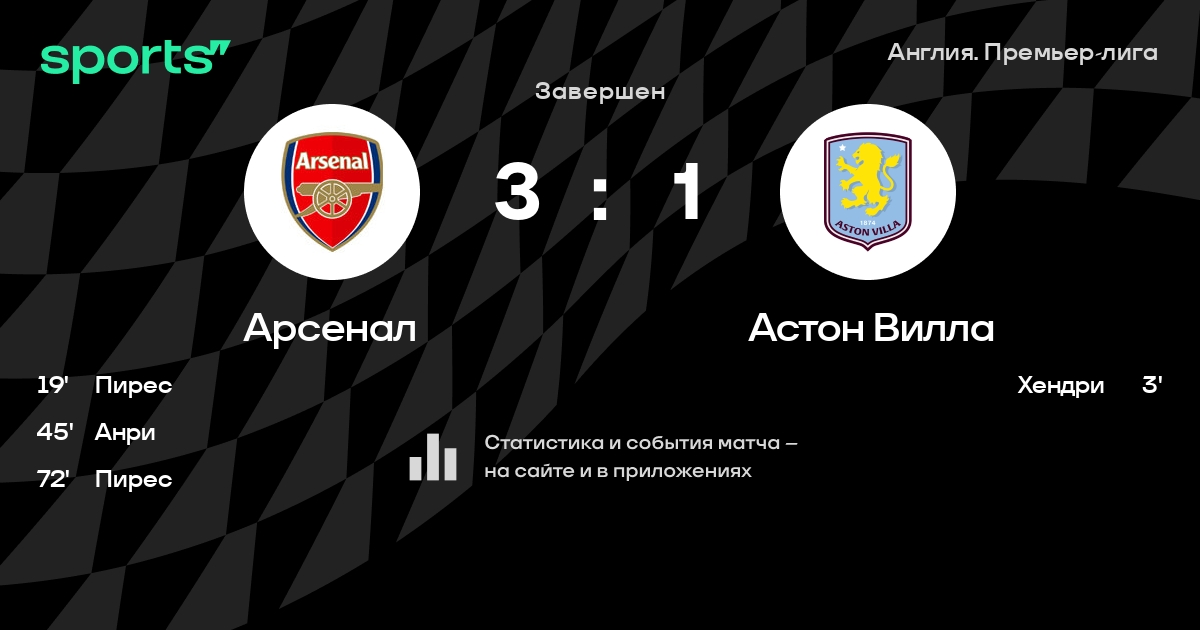 Трансляция Арсенал - Астон Вилла