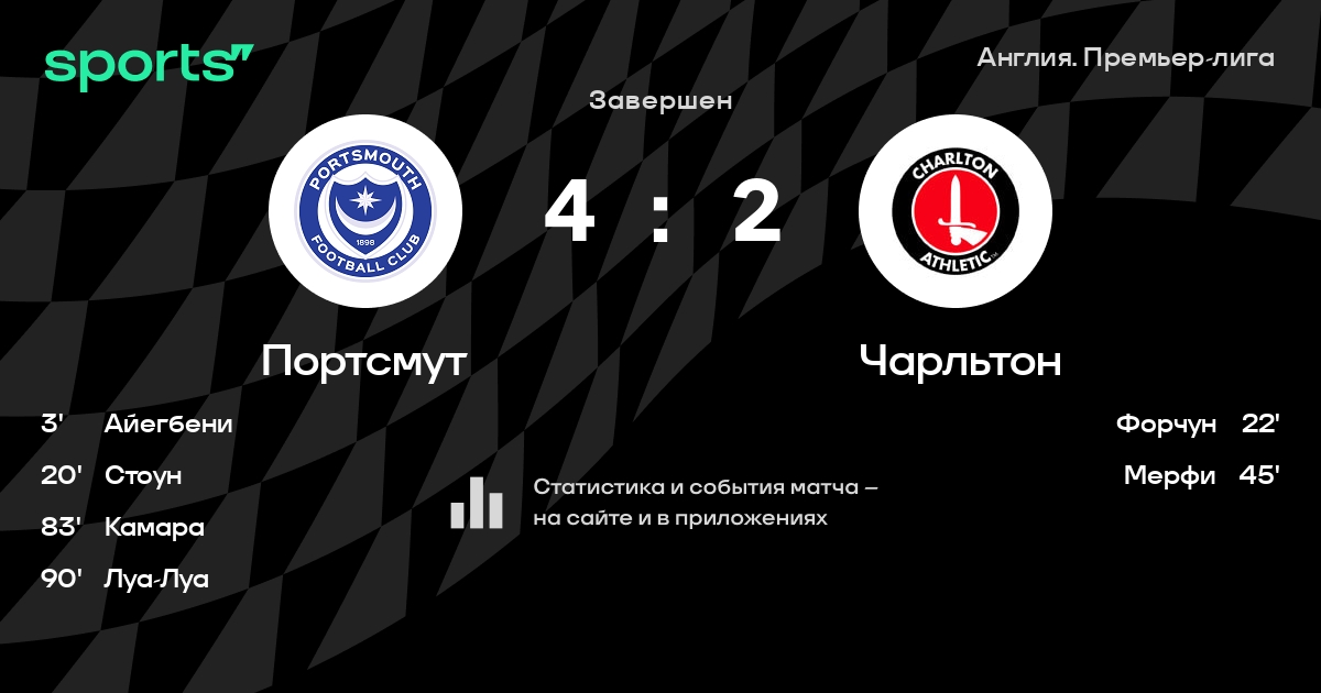 | 16 | Портсмут | 38 | 10 | 9 | 19 | 43 | 59 | -16 | 39 | ||