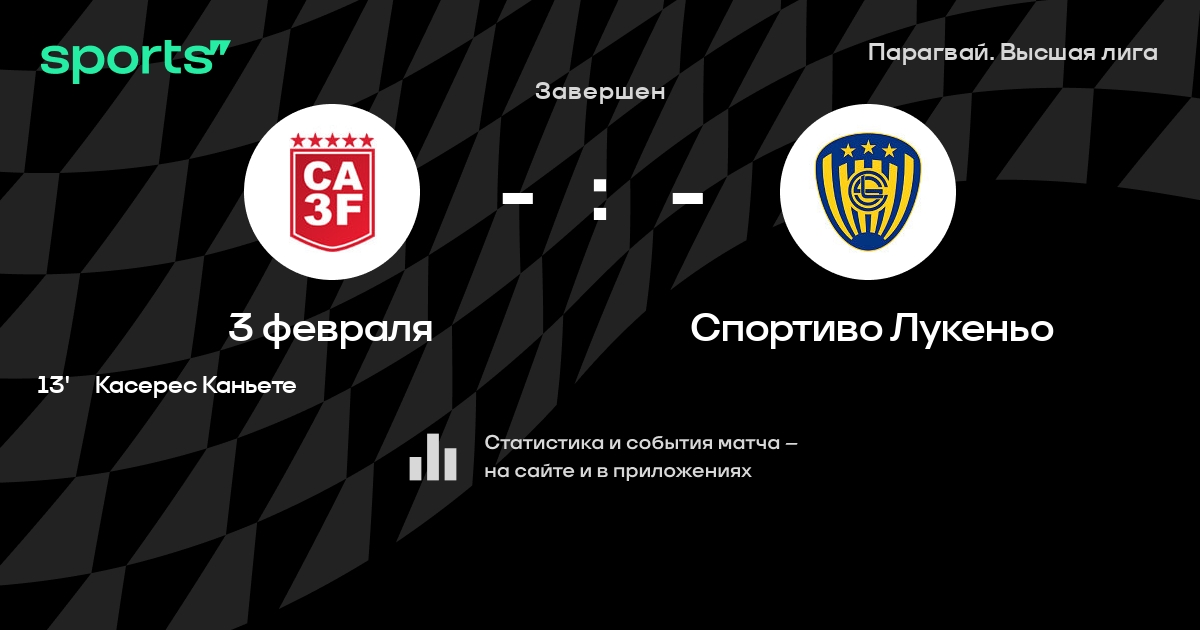 Трансляция 3 февраля - Спортиво Лукеньо