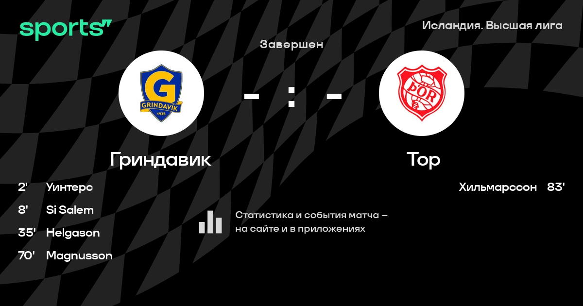 Петюрссон - Бьярнасон - Magnússon, McShane, Einarsson, Helgason, McCunnie - Si Salem, Хьялталин, Поспишил, УинтерсЗапасные: Giddens, Fridriksson, Bjarnason, Bjarnason, Ramsay, Björgvinsson