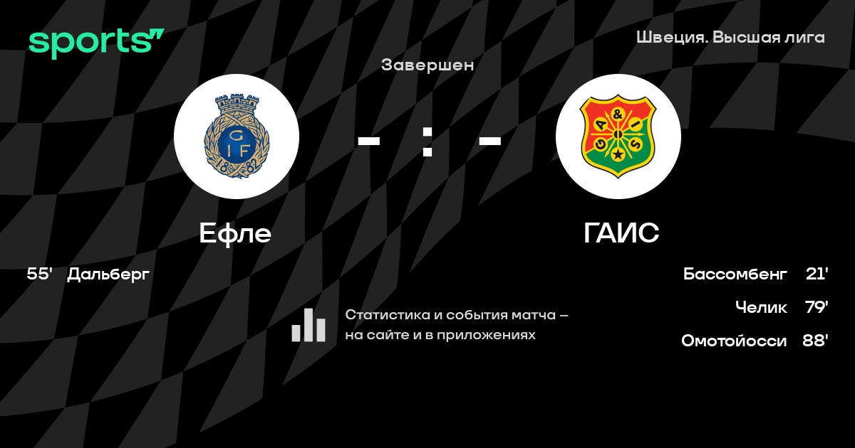 Хюгоссон - Бернхардссон, Theorin, Hellström, Морд, Портин - Ханссон, Лантто, Чибса - Орлов, ДальбергЗапасные: Хедвалль, Сенаторе, Ларссон, Абдуллаи, Капчевич, Тернрос