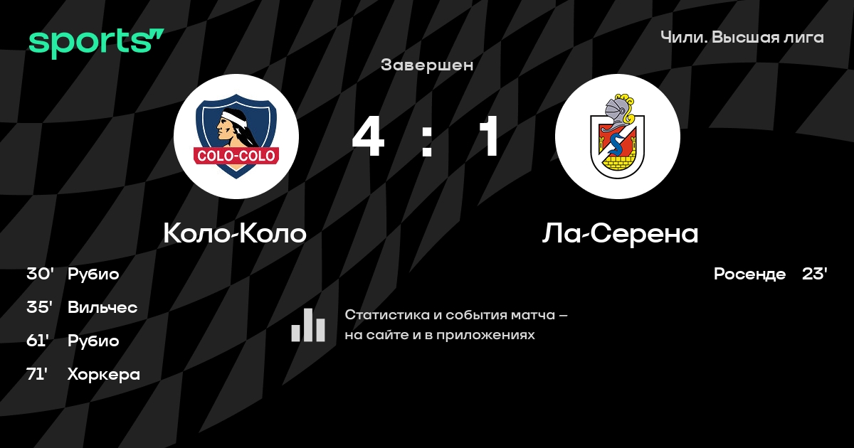 Gutiérrez - Карока, Росенде, Сентено, Guidi Pierani, Пардо, Рохас - García Sánchez, Salazar Durán - Рубио, СотелоЗапасные: Villalobos Bertolino, Cortés Jiménez, Vargas Pino, Видангосси, Campusano, Грондона