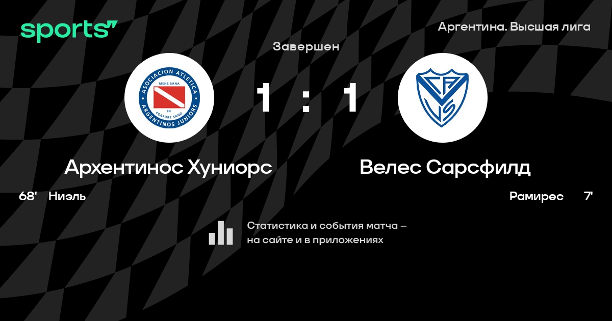 Трансляция Архентинос Хуниорс - Велес Сарсфилд