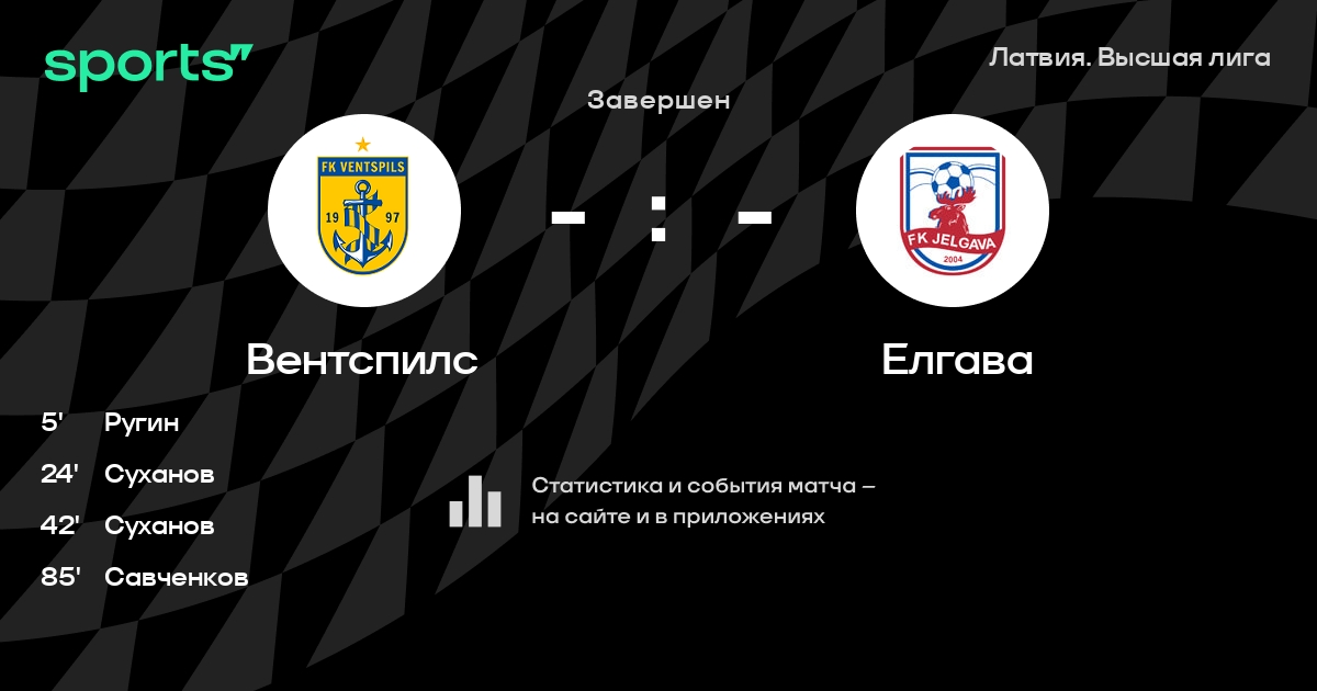 Вентспилс - Елгава: статистика матча
