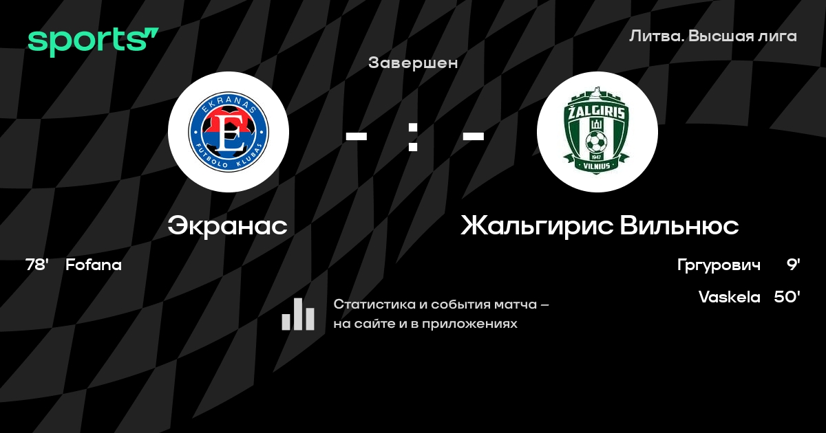 Зубас - Дедура, Самусевас, Йокшас - Томкявичюс, Анджелкович, Радавичюс, Вертелис, Кучис - Fofana, ВеличкаЗапасные: Каунецкас, Мороз, Саснаускас, Лукас Алонсо, Маркявичюс