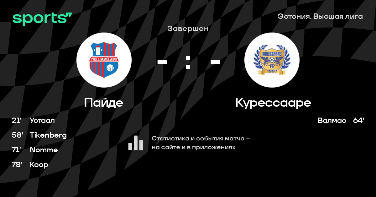 Пиккер - Reiman, Валмас, Saar, Rajaver, Azarov, Aava - Viira, Aljas - Ilves, PukkЗапасные: Рейман, Kluge, Kivi, Trasberg