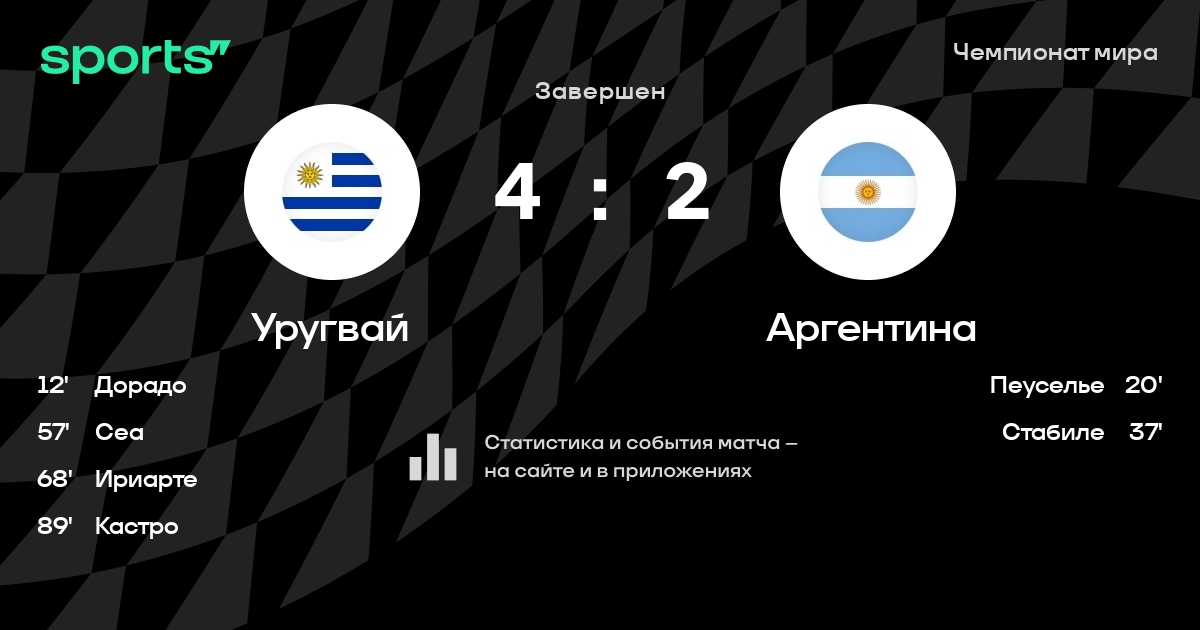 Бальестерос - Маскерони, Насасси - Фернандес, Хестидо, Андраде - Сеа, Ириарте, Кастро, Дорадо, СкаронеЗапасные: Cappuccini, Recoba, Техера, Píriz, Riolfo Secco, Melogno, Calvo, Saldombide, Ансельмо, Петроне, Урдинаран