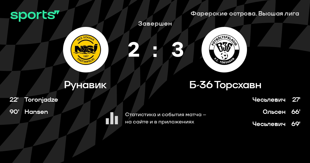 Ганго - Фредериксберг, Хансен, Йонсен, Миккельсен - Hansen, Danielsen, Toronjadze - Якобсен, Ольсен, á LakjuniЗапасные: , Sørensen, Razak, Фредериксберг, Ольсен