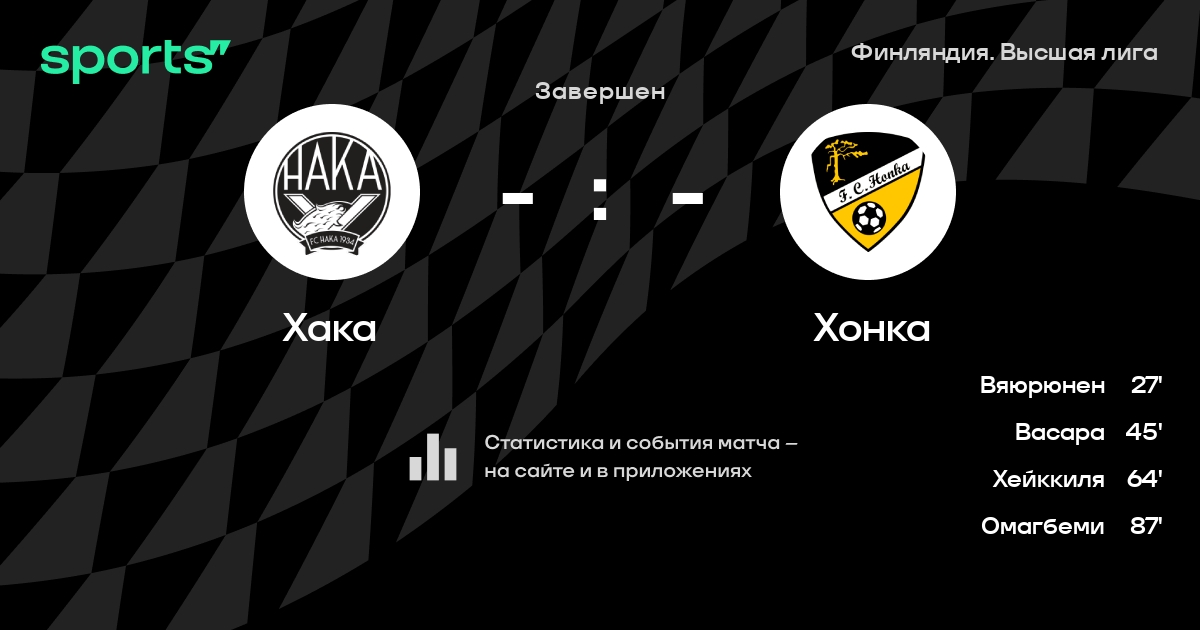 Хака играет вничью в 3 последних очных встречах в турнире «Финляндия. Высшая лига»