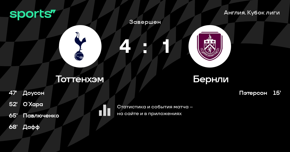 Гомес - Доусон, Вудгейт, Чорлука - Леннон, Зокора, Модрич, Бентли - Павлюченко, Кэмпбелл, Бэйл