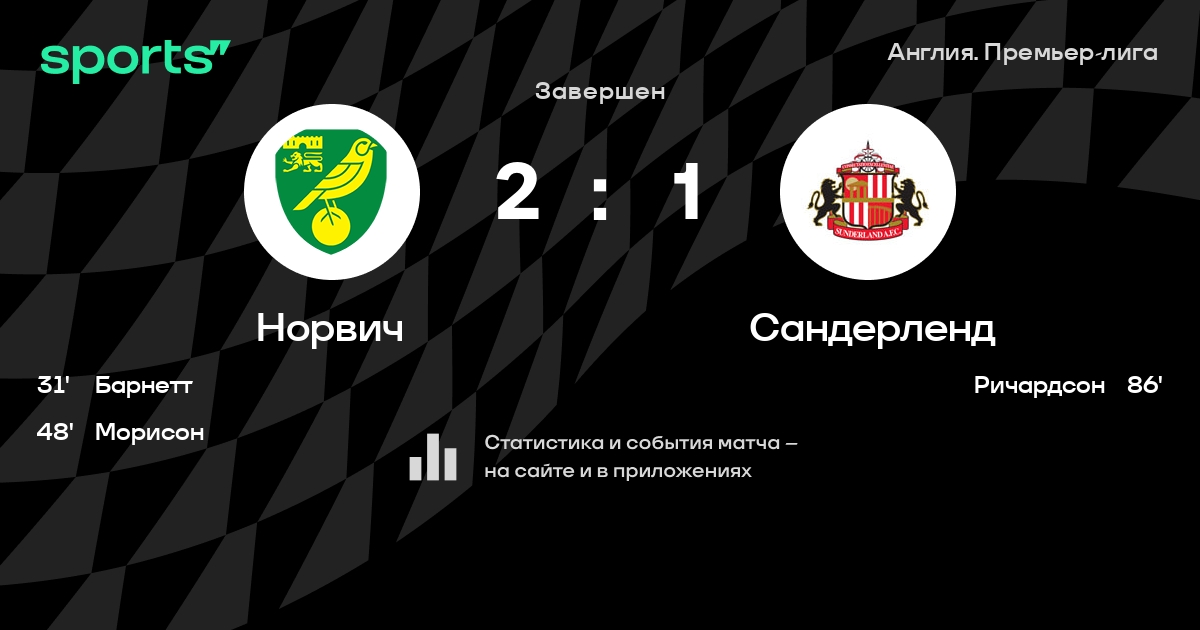 Чемпионат Англии. 6-й тур. «Норвич» обыграл «Сандерленд» и другие результаты