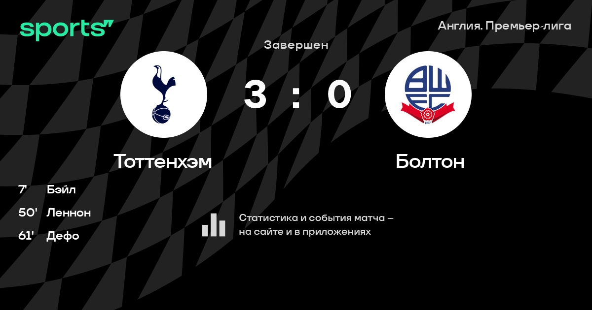 Фридель - Ассу-Экотто, Уокер, Галлас, Кабуль - Леннон, Модрич, Паркер - Дефо, Бэйл, АдебайорЗапасные: Кудичини, Бассонг, Пиенар, Ливермор