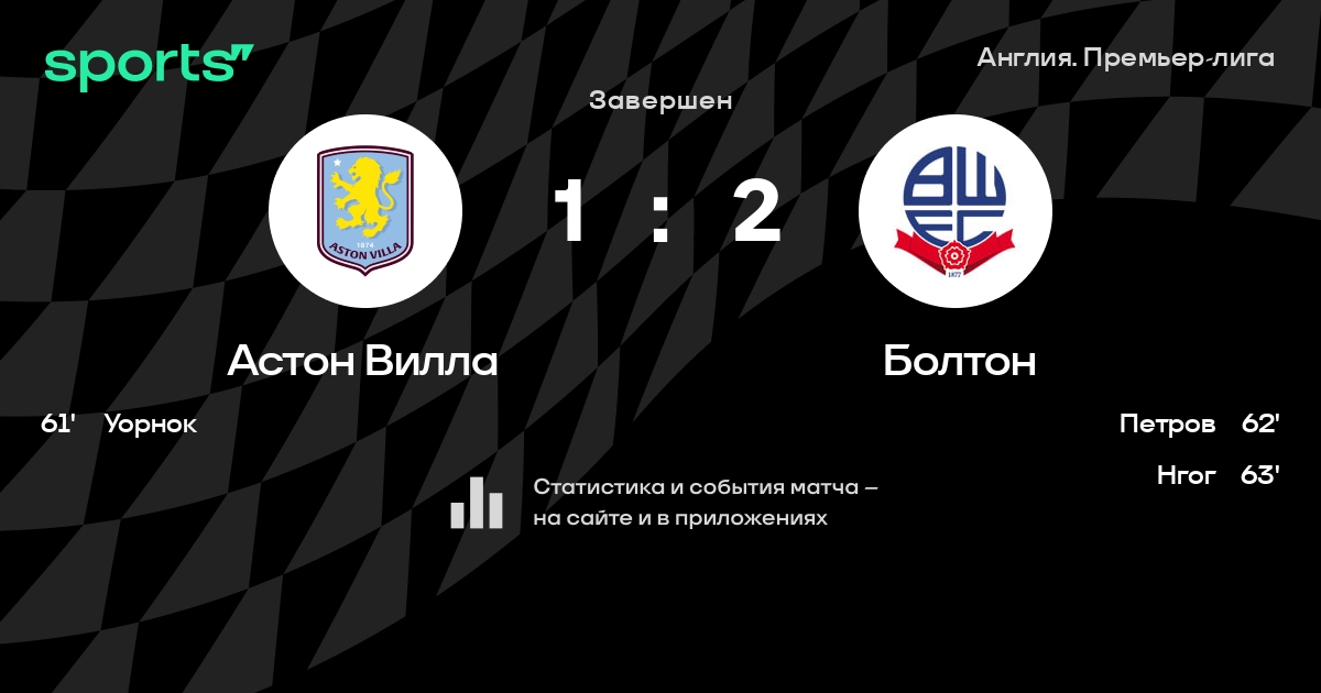 Чемпионат Англии. 29-й тур. Перенесенный матч. «Астон Вилла» уступила «Болтону»