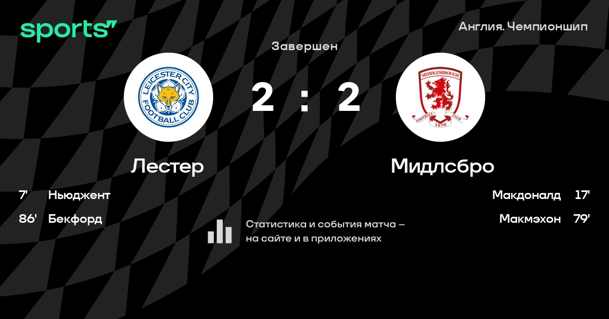 Англия. Чемпионшип. 28-й тур. «Лестер» и «Мидлсбро» сыграли вничью и другие результаты