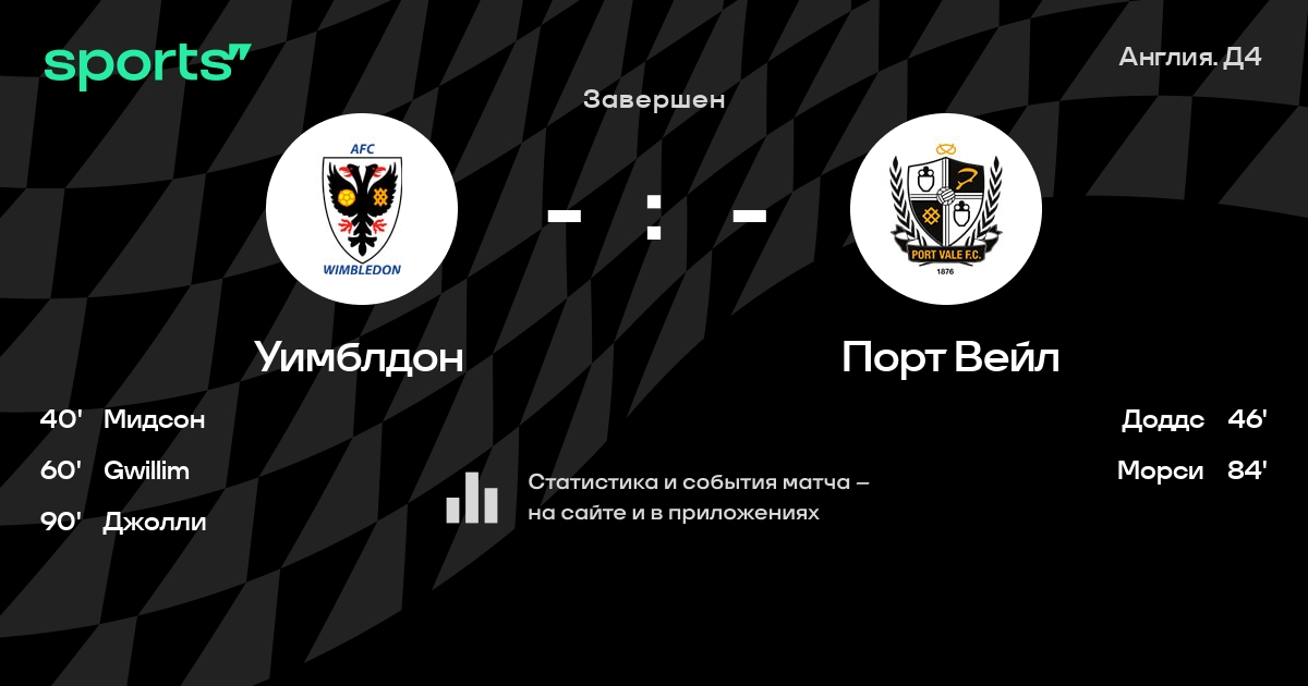 Tomlinson - Маккомб, Йейтс, Owen, Макдоналд - Уильямсон, Гриффит, Taylor, Робертс - Доддс, ПоупЗапасные: Martin, Грин, Морси, Литтл, Ричардс