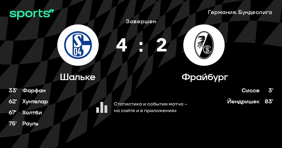 Фэрманн - Матип, Утида, Пападопулос, Хеведес, Фукс - Клюге, Холтби - Хунтелар, Рауль, ФарфанЗапасные: Уннершталь, Метцельдер, Хегер, Баумйоханн, Хурадо, Марика, Дракслер