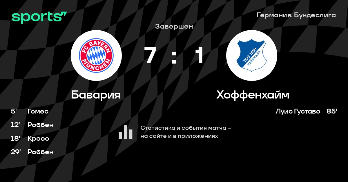 Нойер - Дж. Боатенг, Алаба, Бадштубер, Лам - Луис Густаво, Кроос, Рибери - Гомес, Роббен, МюллерЗапасные: Бутт, Контенто, Швайнштайгер, Петерсен
