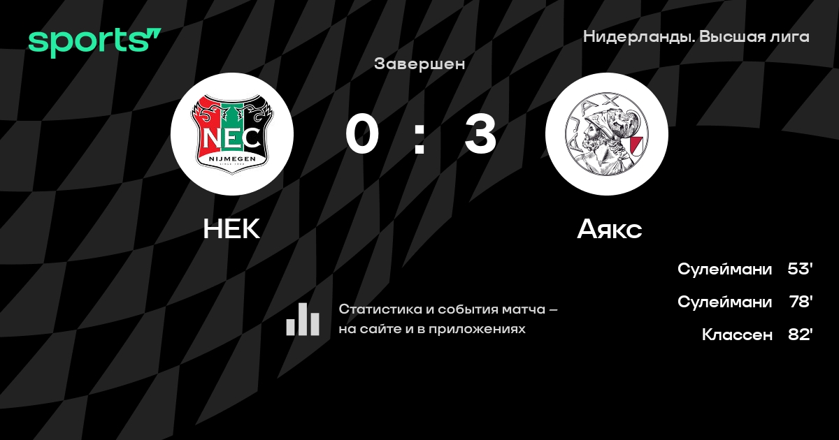Чемпионат Голландии. 14-й тур. «Аякс» разгромил НЕК и другие результаты