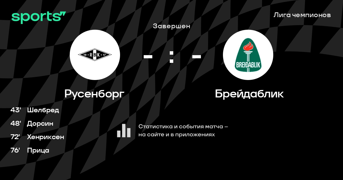 Эрлунд - Ларсен, Дорсин, Вангберг, Люстиг, Свенссон - Винснес, Хенриксен, Шелбред - Прица, МольдскредЗапасные: Братен, Лаго, Мидтше, Бакенга, Ольсен