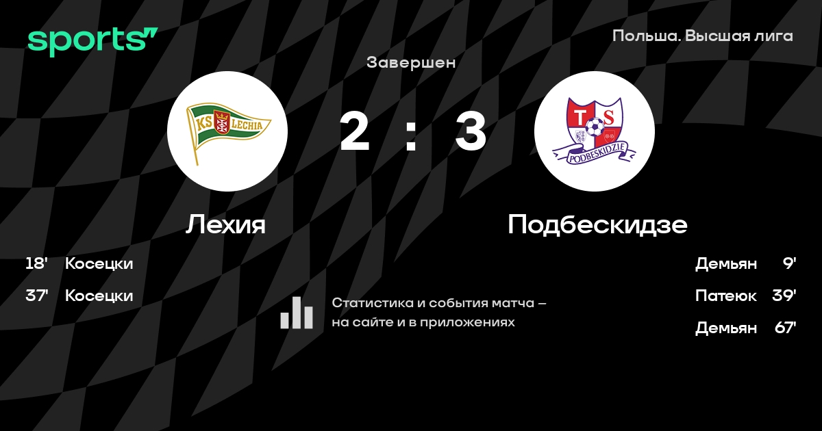 | 10 | Ягеллония | 30 | 11 | 6 | 13 | 35 | 45 | -10 | 39 | ||