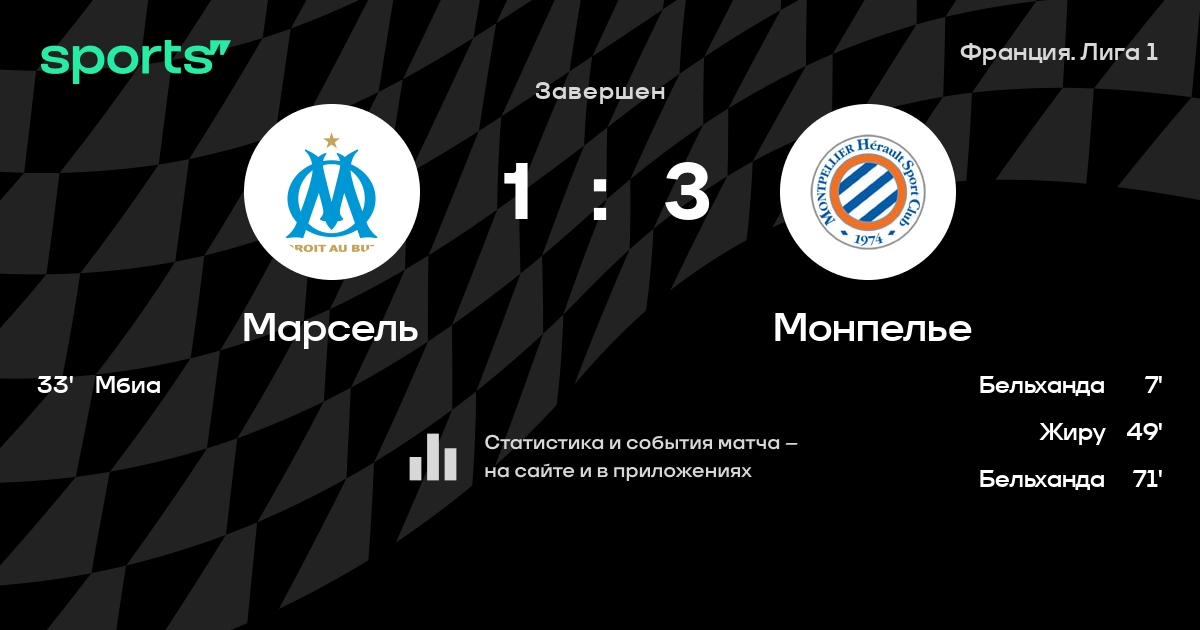 Чемпионат Франции. Перенесенный матч 30-го тура. «Марсель» проиграл «Монпелье»