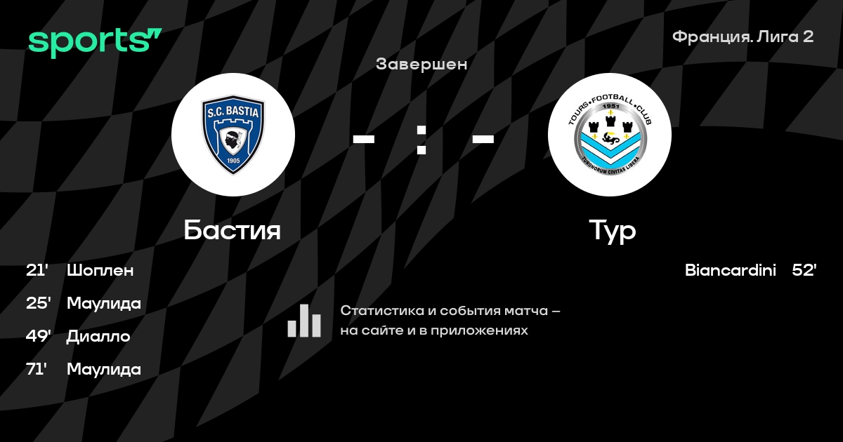 | 1 | Бастия | 38 | 21 | 8 | 9 | 61 | 36 | +25 | 71 | ||