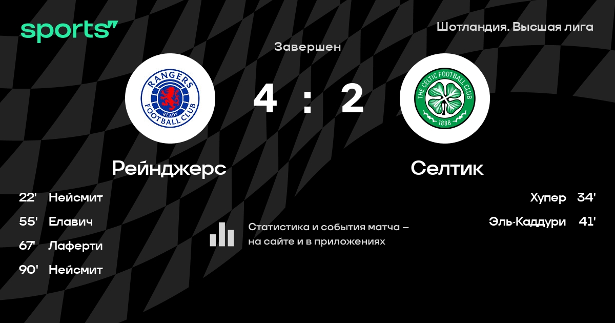 Чемпионат Шотландии. 8-й тур. «Рейнджерс» победили «Селтик» и другие результаты