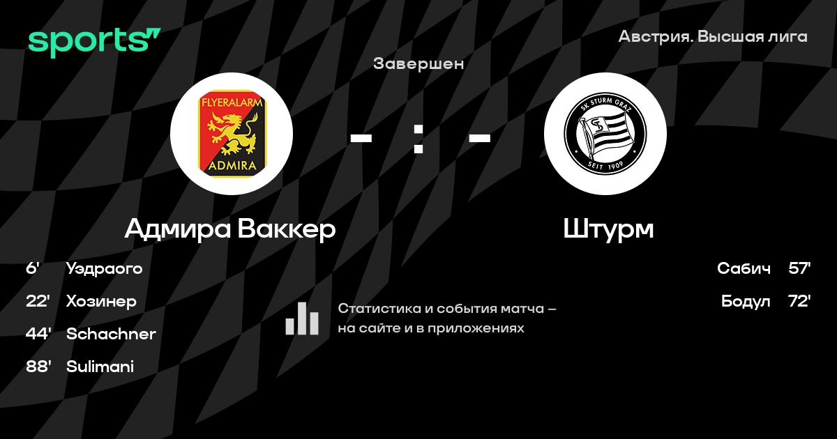 Tischler - Дибон, Виндбихлер, Палла - Schachner, Шваб, Ежек, Зебахер - Уэдраого, ХозинерЗапасные: , Дрешер, Земан, Сулимани