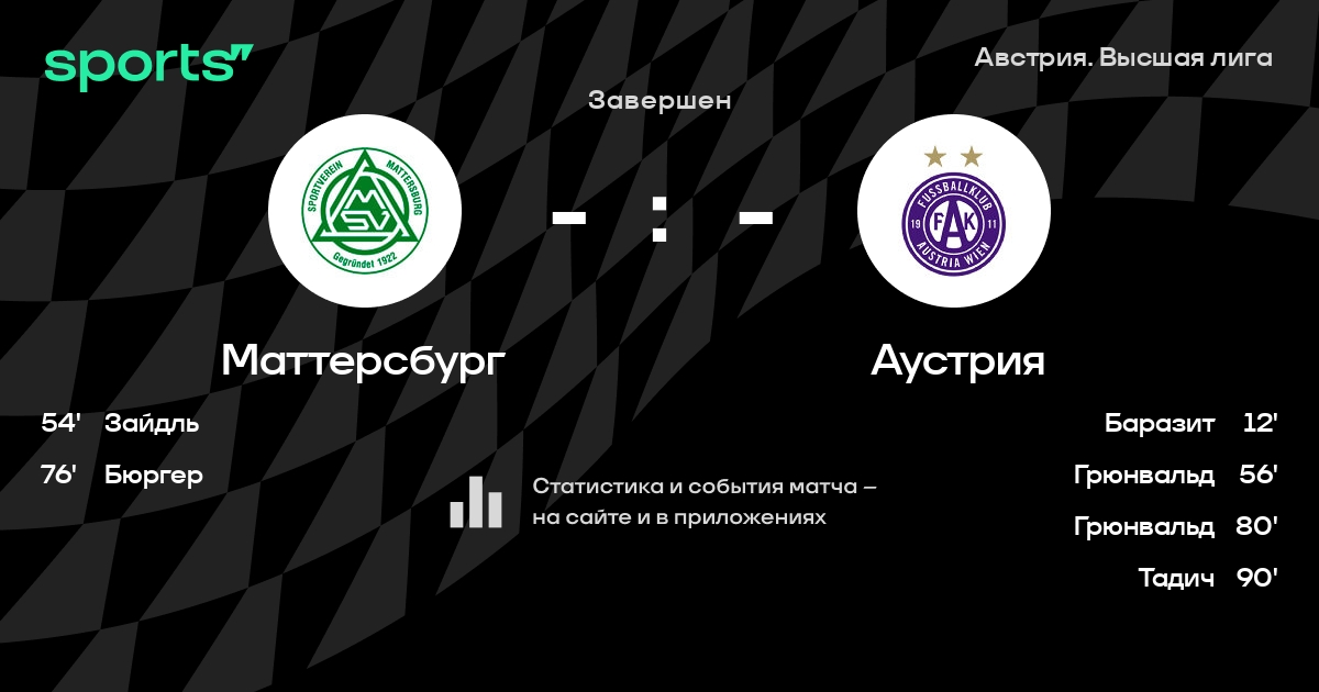 Schartner - Пелльхубер, Малич, Фаркаш, Хеллер, Мравац - Ильзанкер, Зайдль, Mörz - Наумоски, БюргерЗапасные: Боренич, Родлер, Рат, Spuller, Доморо